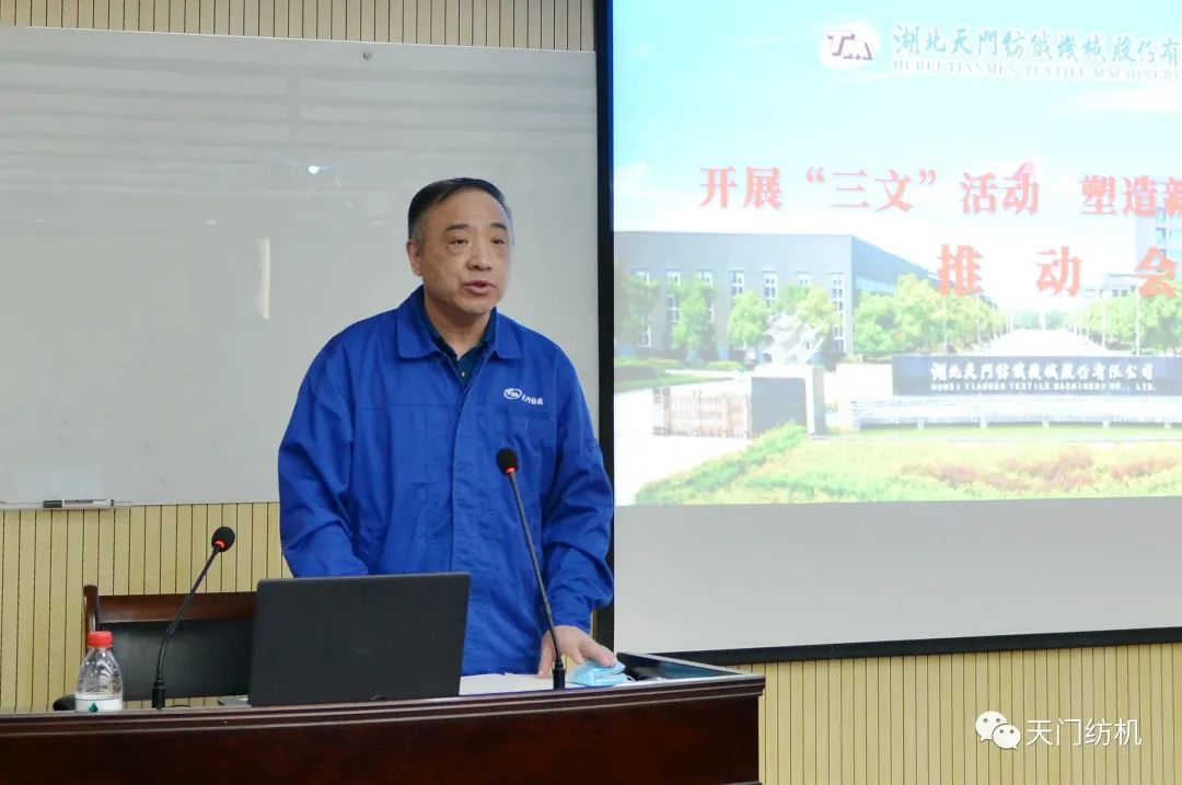 魯德文要求,一是統一思想,提高認識:“三文”活動的理念既是在當前國際形勢復雜多變、新冠疫情反復無常、國內經濟受到嚴重沖擊、行業形勢日趨嚴峻的背景下提出的,目的和意義只有一個,就是要通過“三文”活動全面提高員工素質、塑造新型員工隊伍、建立現代企業管理制度、實現高質量發展,以應對復雜多變的國內外經濟形勢,讓天門紡機立于不敗之地;“三文”活動的理念也是公司的一種文化傳承。十多年前,公司制定實施“提精神、創精品、當精英”的“三精”戰略,并以此為引領,推動新產品開發、技術改造、品牌建設等工作,促進企業快速發展;兩年前,公司提出優化社會、市場、內部“三個”生態的理念,通過營造“以人為本”的內部生態、共生共享的社會生態、利他共贏的市場生態,把包容、共享、全球化的發展理念貫徹到企業生產經營之中,影響到行業及社會多個層面,使公司形象得到極大提升、軟硬實力與日俱增,推動了企業高發展。“三文”與“三個生態”一脈相承,著重于員工素質教育、塑造新型員工隊伍、營造良好的內部生態,其落腳點和最終目標與后者是完全一致的。同時,開展“三文”活動是企業文化建設永不過時、永遠不可或缺的重要內容。通過文明禮儀教育,提高員工個人素質、樹立企業良好形象,是當前公司生產經營和優化人力資源的內在需要;通過開展文化素質提升活動,引導員工樹立正確的世界觀、人生觀、價值觀是員工自身工作、生活和企業文化建設的主觀要求;通過文體活動,促進員工心身健康、增強企業凝聚力是企業和員工共同的美好愿望。因此,我們要把“三文”活動上升到企業生產經營和文化建設一個更新的高度。二是明確特點,創新亮點:“三文”活動是長期性活動,是全方位的活動,是全員參與的活動,因此,我們一要堅持不懈,不斷努力;二要各方配合,通力協作;三要全體總動員,積極投入到各項活動中。同時,我們要多出主意、多想點子,創新活動的方式方法或形式內容,創建天門紡機特色文化、特有文化和經典文化。三是增強責任感,層層抓落實:在“三文”活動的通知中,我們已經確定了組織機構,明確了目標任務,希望公司各部門負責人、活動小組各位負責同志,切實擔起責任,抓好落實。四是科學制定計劃,注重實效:我們在制定計劃時,既要合理安排時間,兼顧公司正常的生產經營,又要統籌安排,協同推進,使生產經營與文化建設相得益彰。