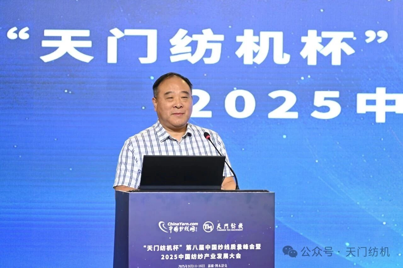 天門紡機董事長沈方勇在致辭中分享了天門紡機四十余年專注并條機研發,從小作坊逐步發展成為國家重點專精特新小巨人企業及榮獲“單項冠軍產品”稱號的現代化企業的奮斗歷程。他指出,當前行業正處于重要發展窗口,本次峰會占據天時地利人和,注定會收獲滿滿。他強調,紡織工業不僅是國家經濟的重要支撐,更是增強綜合國力的關鍵力量。他呼吁,紡織同仁一定要堅定信心、強化合作,以質量為核心,共同提升中國紡織裝備的國際競爭力。